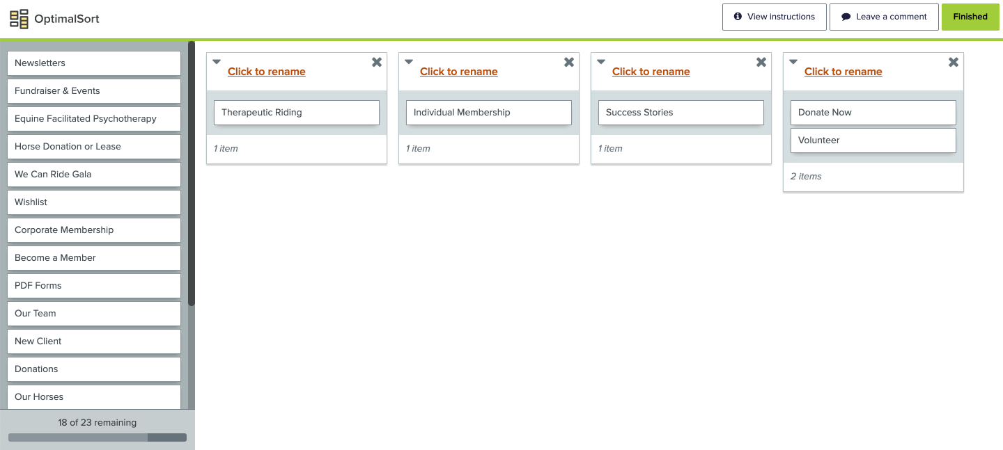 Remote Card sorting exercise